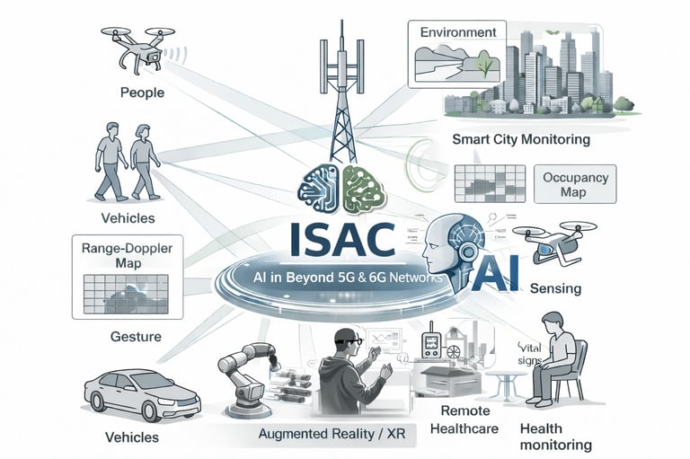 The Power of AI-Driven Prediction Our unique approach elevates ISAC by fusing it with advanced Artificial Intelligence. We develops AI algorithms that utilize sensing data to predict User Equipment (UE) behavior and network channel states before changes occur. Instead of reacting to interference or signal drops, our system anticipates movement and environmental shifts, allowing the network to proactively optimize beamforming and resource allocation. This predictive capability is the key to ultra-reliable, low-latency communication for autonomous systems.